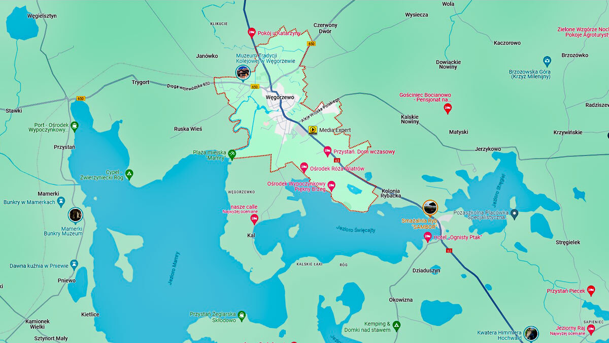 Mikołajki i okolice zwiedzaliśmy przed i po noclegu oraz pływaniu stateczkiem po jeziorze Wigry. Okolice to m.in. hotel Gołębiewski, przystań jachtowa i odległy o kilka kilometrów widok z góry na jezioro, którego nazwy nie jestem w stanie, w roku 2025 ustalić. Wyjechaliśmy późnym