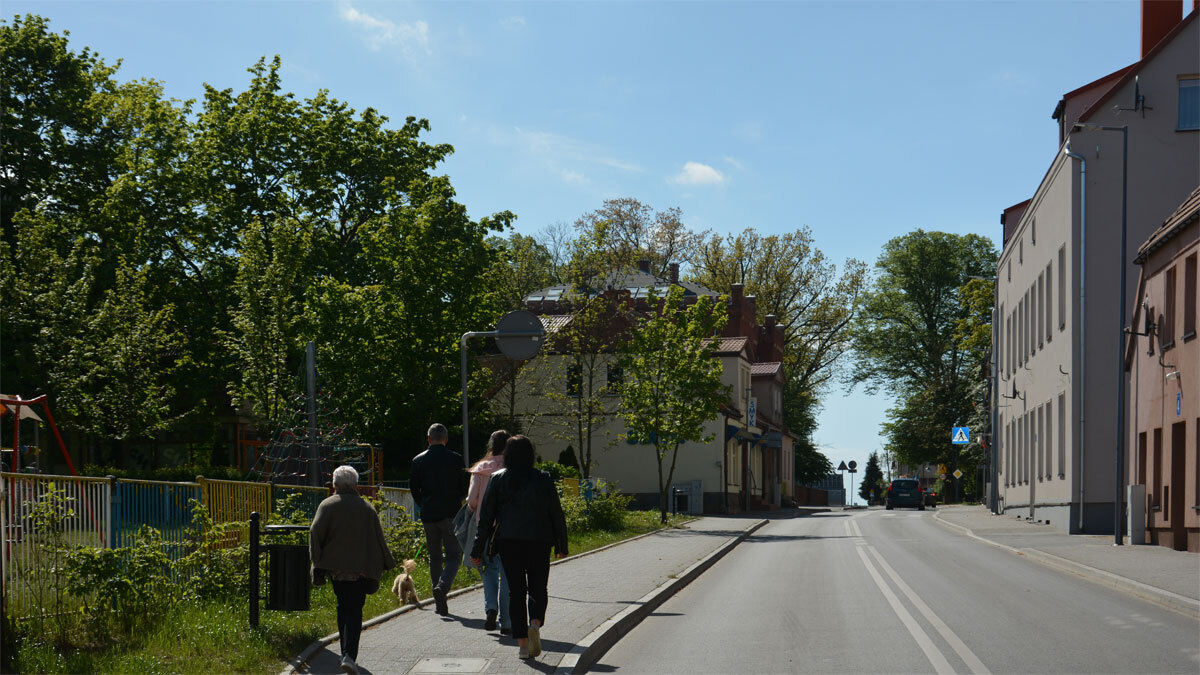 Za "nową starówką" ciągnie się stara, w większości parterowa, zwarta zabudowa pozostająca pod ochroną konserwatora zabytków. Być może zdziwi Cię przez moment duża szczerba w tej zabudowie, tuż za siedzibami banków. Zrozumiesz widząc, że na jej skraju, przy głównej ulicy, niemalże w sercu miasta stoi filia zakładu pogrzebowego. Do takiego sąsiedztwa nikt z budową jakoś się nie garnie. Około 150 metrów dalej, po tej samej stronie ulicy zauważysz Urząd Pocztowy, przed nim małą zatoczkę. Nie zatrzymuj się w niej nawet wtedy, gdy stoi tam jakikolwiek inny samochód. Wielu kierowców otrzymało za to mandat (ja też, ale tylko raz). Ta "zatoczka" to - wg miejscowej Policji - skrzyżowanie. Pogląd albo aktywność Policji uległa zmianie - w roku 2021 auta stają tam na okrągło.